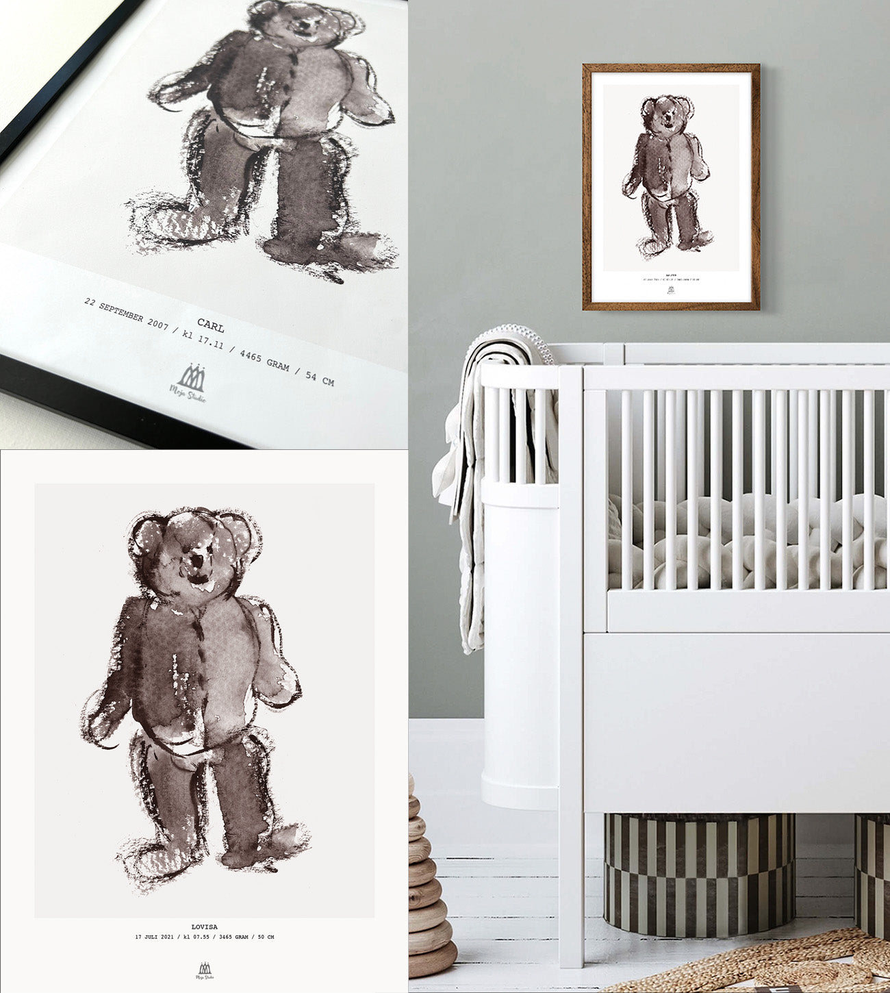 Den lekfulla teddybjörnen är en tidlös symbol för glädje och kärlek som kommer att lysa upp barnrummet. En perfekt gåva för att välkomna det nya tillskottet.
