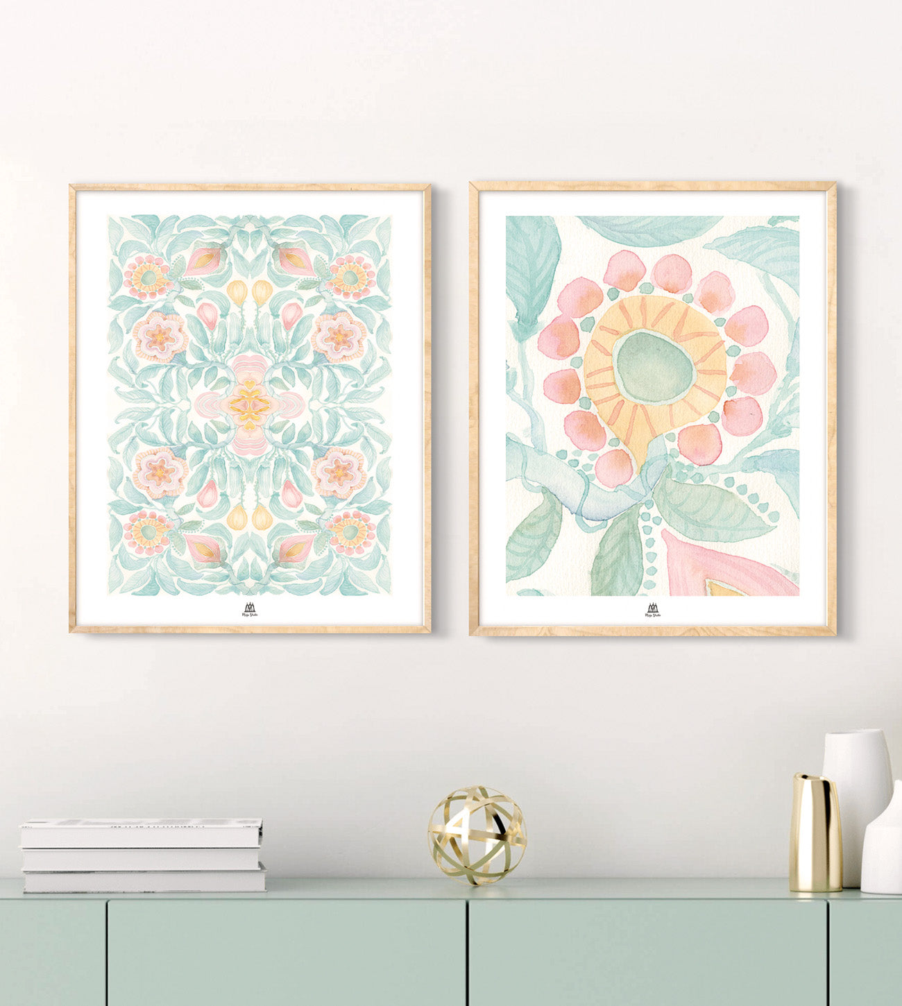 Tavlor i fin mönsterflora, blommor i ljuva harmoniska färger.
