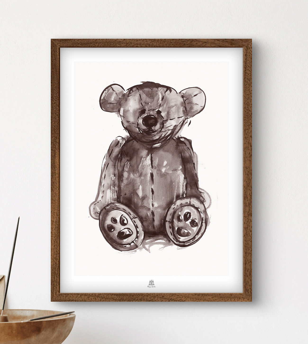 Den sittande nallen Love, en symbol för stillhet och omtanke, vakar med mildhet och kärlek. Med sitt lugna uttryck sprider den en frid som omsluter oss, som ett tyst löfte om beskydd och ro.