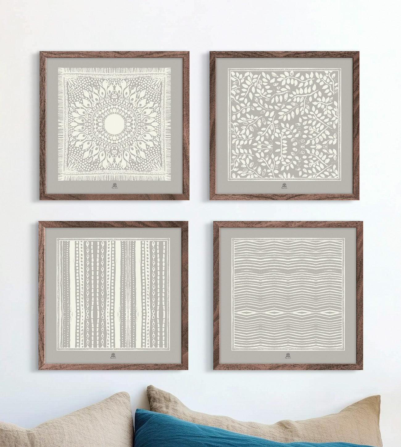 Ett sandfärgat motiv som fångar rörelsen av dansande bladverk.